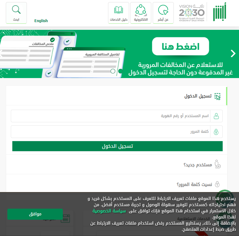 - قم بالدخول على الموقع الإلكتروني الخاص بـ أبشر.