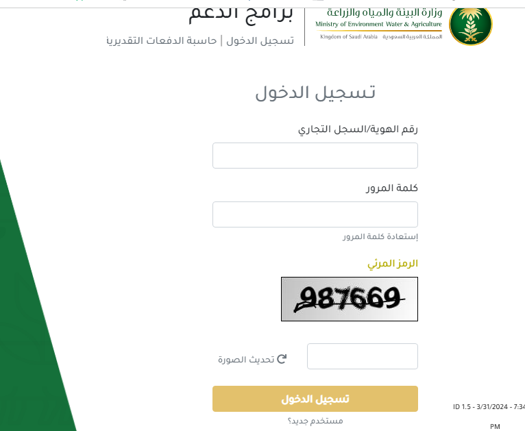 - قم بزيارة الموقع الرسمي الإلكتروني وزارة البيئة والمياه والزراعة برنامج الدعم.