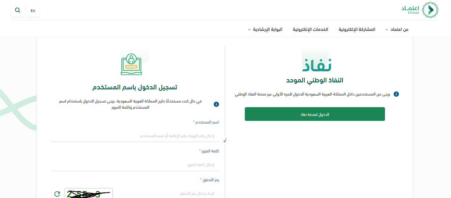 - أو تسجيل الدخول عبر إدخال اسم المستخدم وكلمة المرور، وكتابة رمز التحقق المرئي.