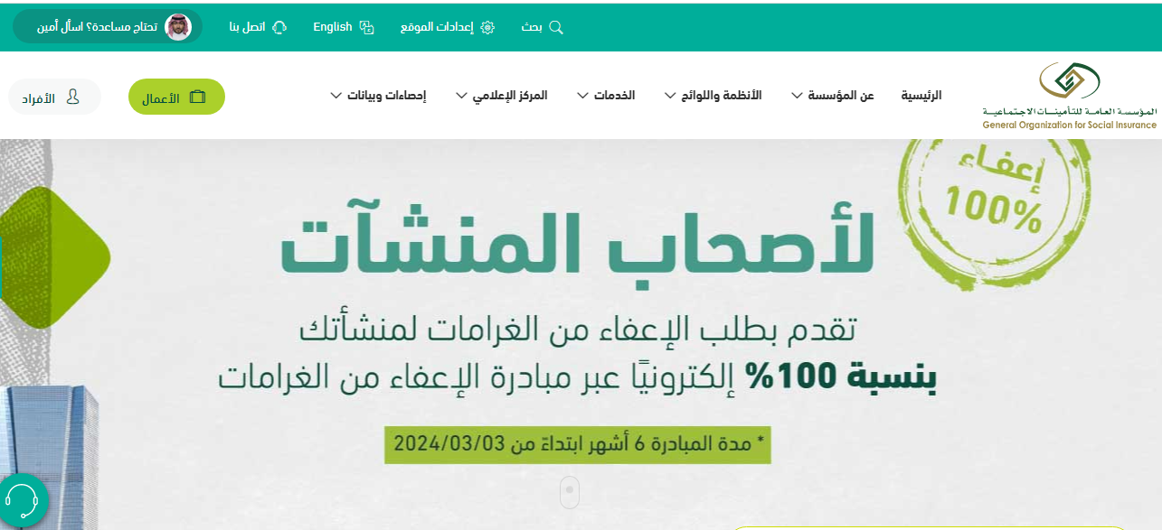 - الدخول إلى الموقع الرسمي للمؤسسة العامة للتأمينات بالمملكة.