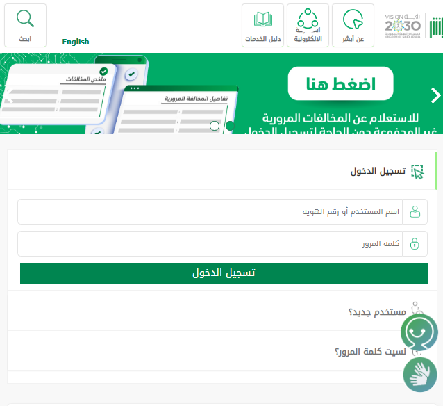 - اختر من الصفحة الرئيسية أيقونة اضغط هنا للاستعلام عن المخالفات المرورية.