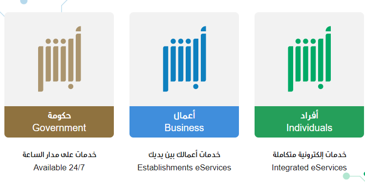 الخدمات الحكومية الإلكترونية المقدمة عن طريق منصة ابشر