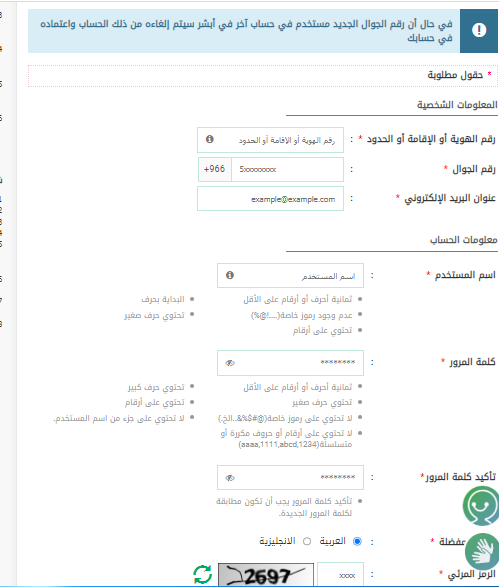 - بعد التحقق من قبل المنصة من البيانات التي قمت بإدخالها، انقر على "تسجيل" وسوف يتم فتح الصفحة الخاصة بك على أبشر.