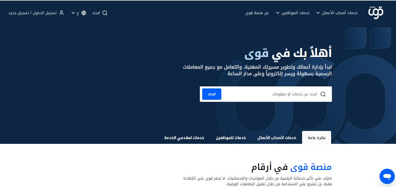 يمكنك الآن أن تقوم بالتسجيل في منصة قوى الإلكترونية، لكي تستطيع الحصول على كافة الخدمات المقدمة للمنشآت والأعمال، وللتسجيل اتبع التالي: