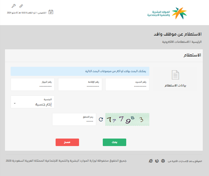 منصة الموارد البشرية والتنمية الاجتماعية في السعودية تعمل على توفير أفضل الآليات إلى الأشخاص المستفيدين من أصحاب المؤسسات والمنشآت، والجدير بالذكر أن من بين أهم الخدمات الرقمية المقدمة خدمة الاستعلام عن المقيم، والتي يتم استخدامها بشكل إلكتروني بسهولة عن طريق رابط التحقق من بيانات العامل الوافد.