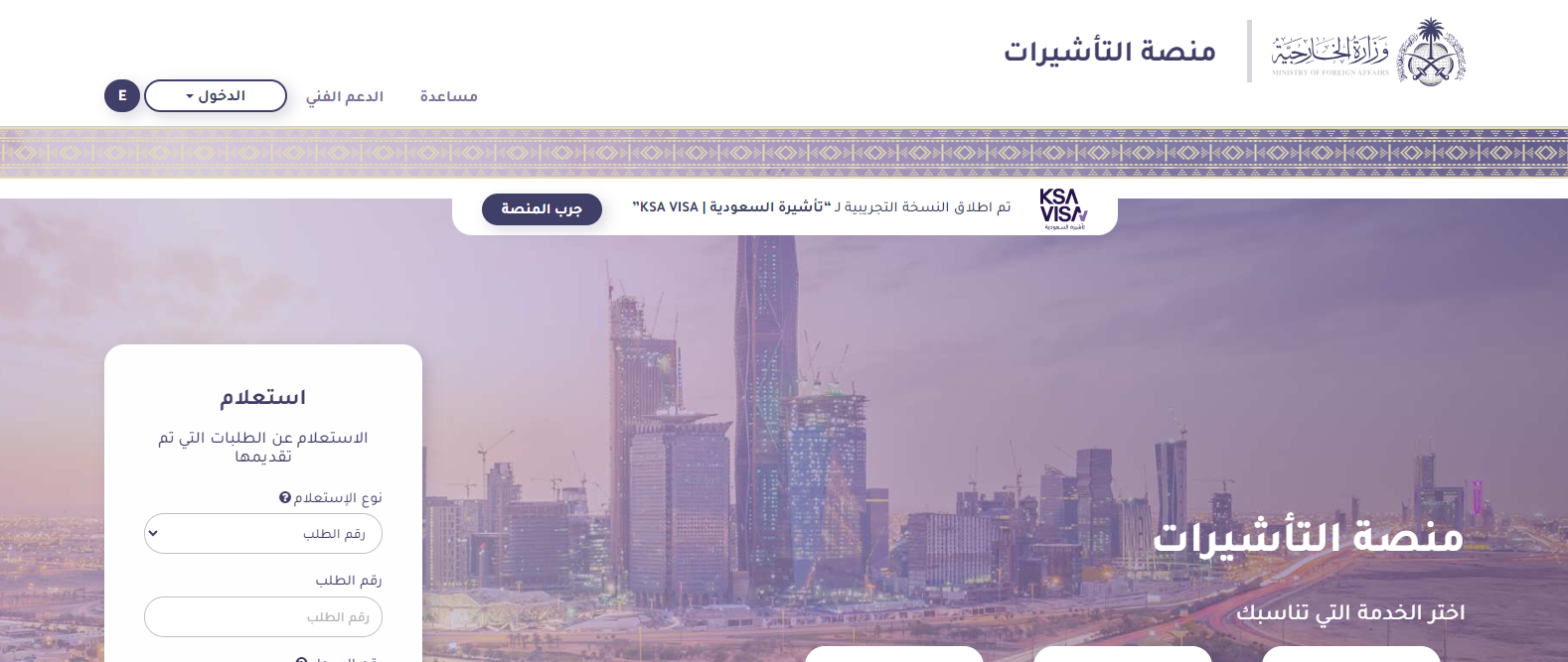 - الدخول إلى الموقع الرسمي الخاص بمنصة التأشيرات الإلكترونية، من هنا.
