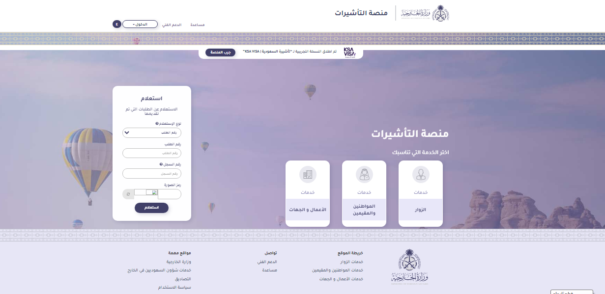 - قم بالدخول إلى منصة التأشيرات الإلكترونية التابعة لوزارة الخارجية في المملكة.