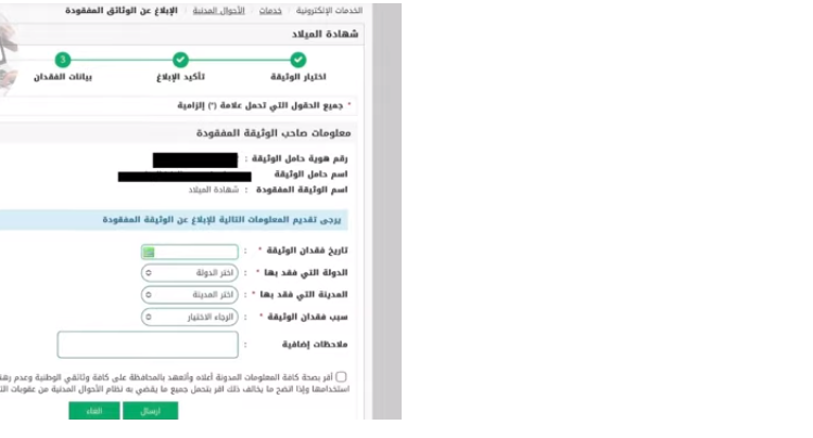 - سجل جميع بيانات الوثيقة المفقودة.