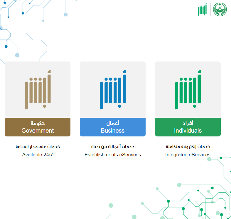 - قم بالدخول على الموقع الإلكتروني الخاص بـ أبشر.