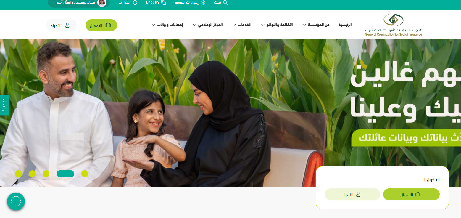 - الذهاب إلى الموقع الإلكتروني الرسمي للمؤسسة العامة للتأمينات الاجتماعية " من هنا ".