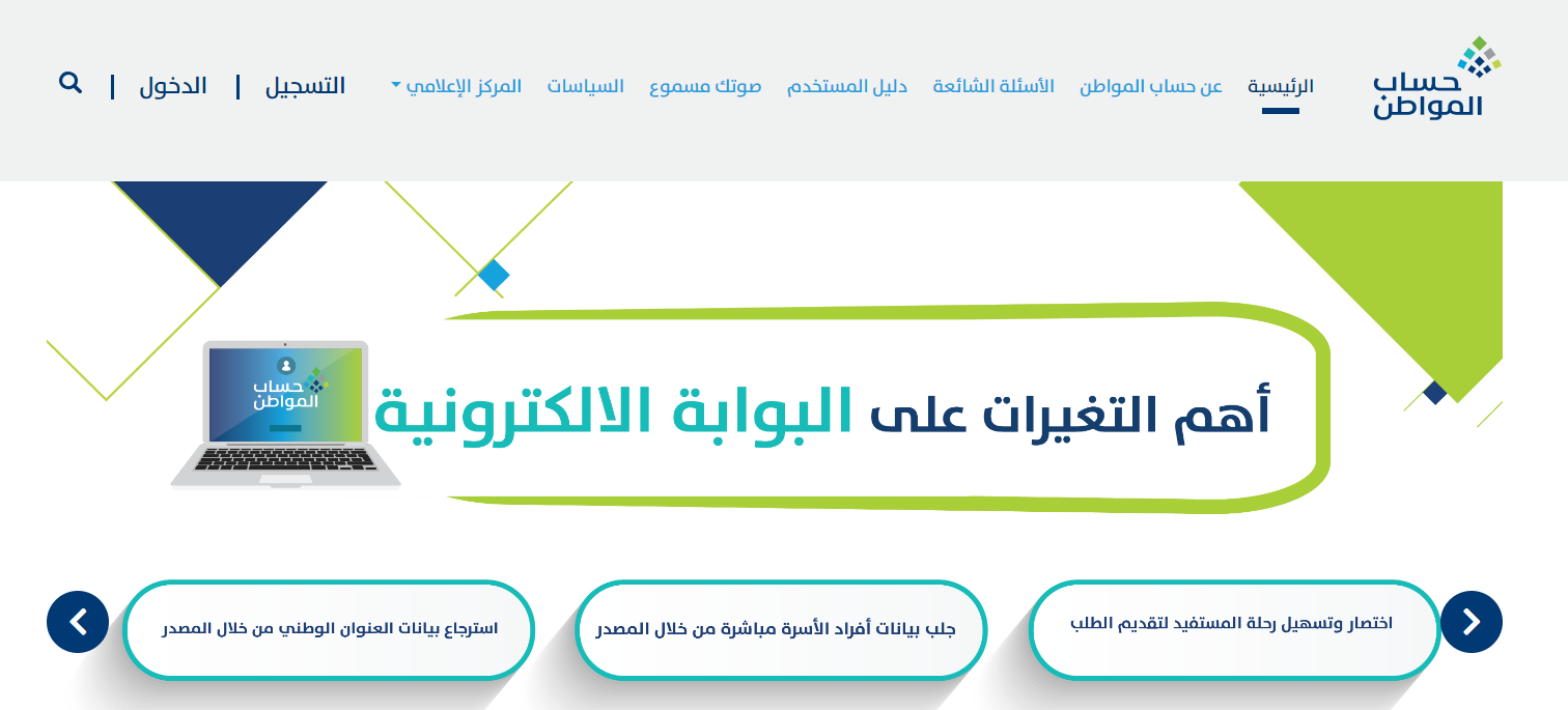 - الدخول إلى الموقع الرسمي الخاص ببرنامج حساب المواطن، من هنا.