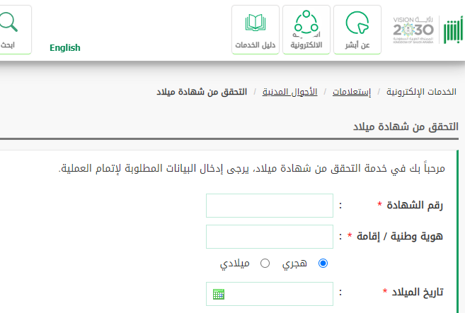 - يرجي انتظار ارسال شهادة الميلاد إلى منزلك عبر البريد السعودي.