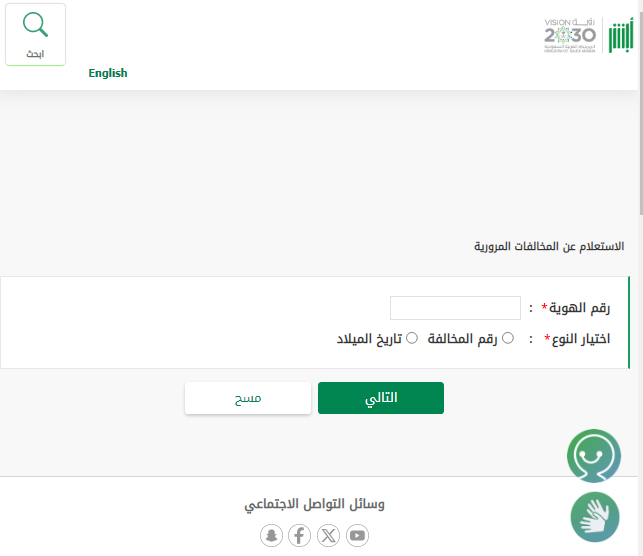 - اختر تبويب اضغط هنا للاستعلام عن المخالفات غير المسددة.