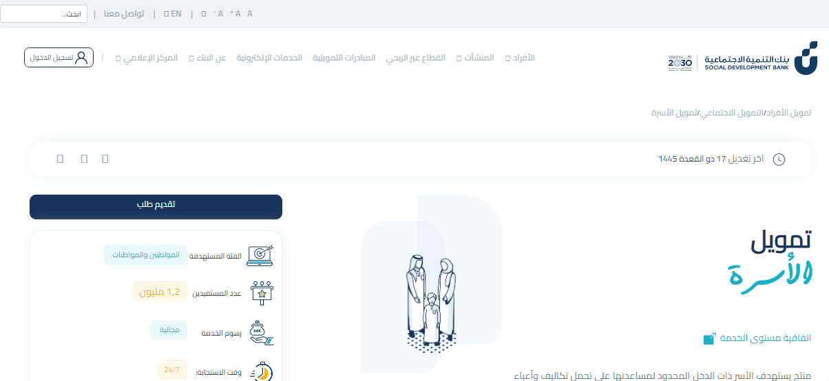- قم بالدخول إلى الخدمة مباشرةً من الموقع الإلكتروني الرسمي بنك التنمية الاجتماعية.