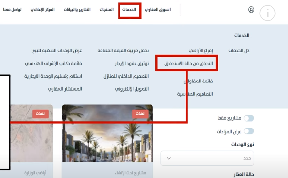 - اختر من خدمات تبويب الاستعلام عن حالة الاستحقاق.