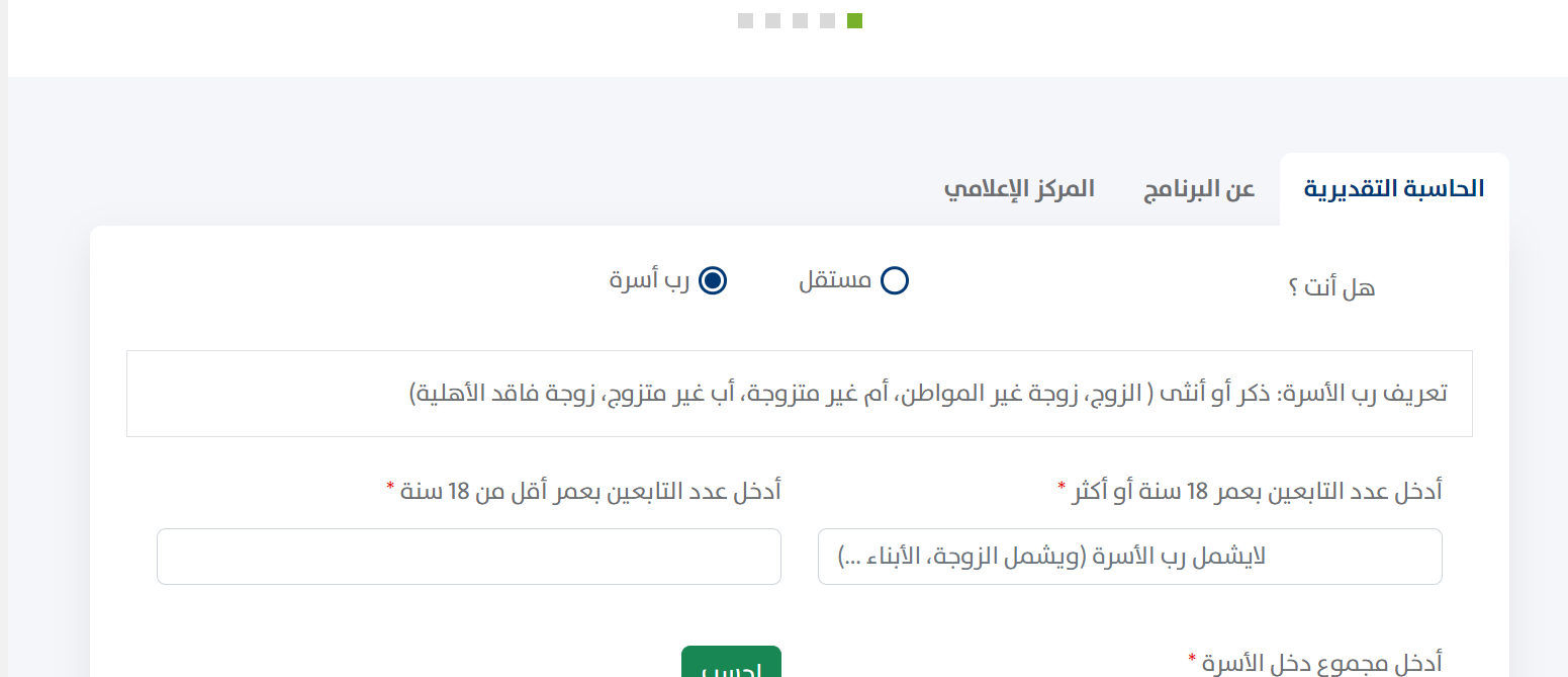 - تحديد إن كان المستفيد مستقل أم رب أسرة.