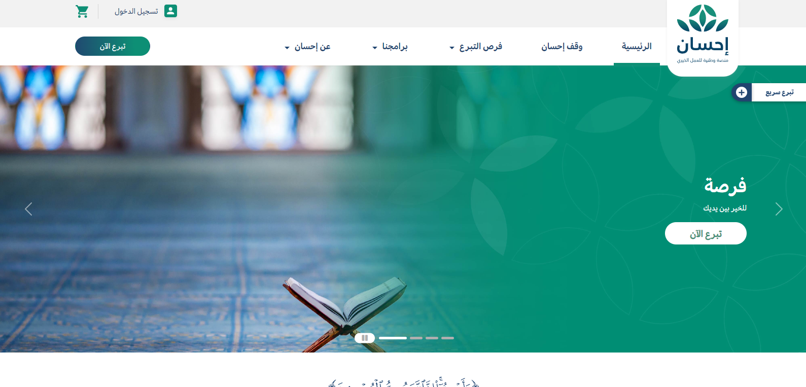 - قم بالتوجه إلى منصة إحسان الخيرية الإلكترونية "من هنا".