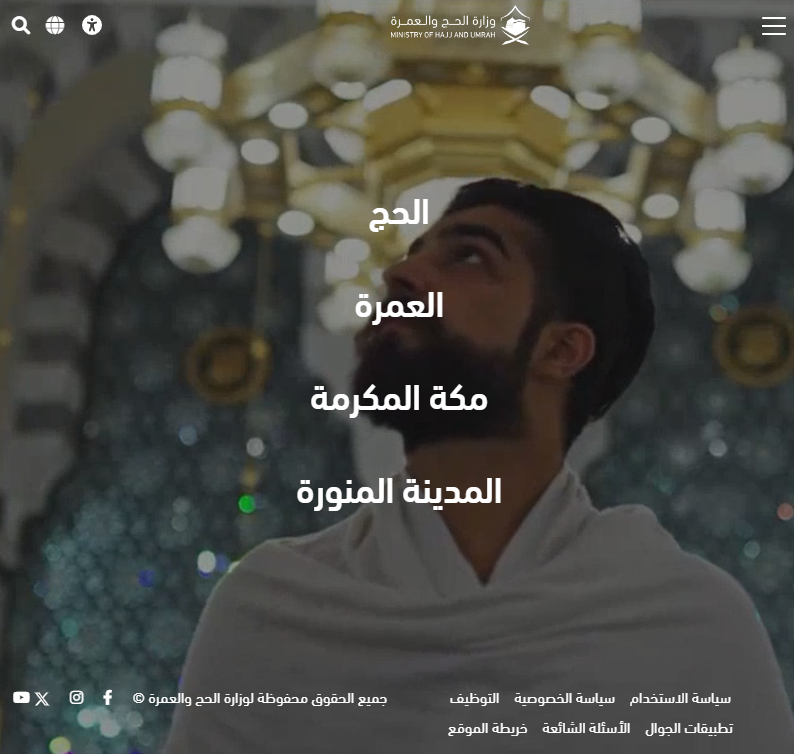 - قم بالدخول على الموقع الإلكتروني الخاص بوزارة الحج والعمرة.