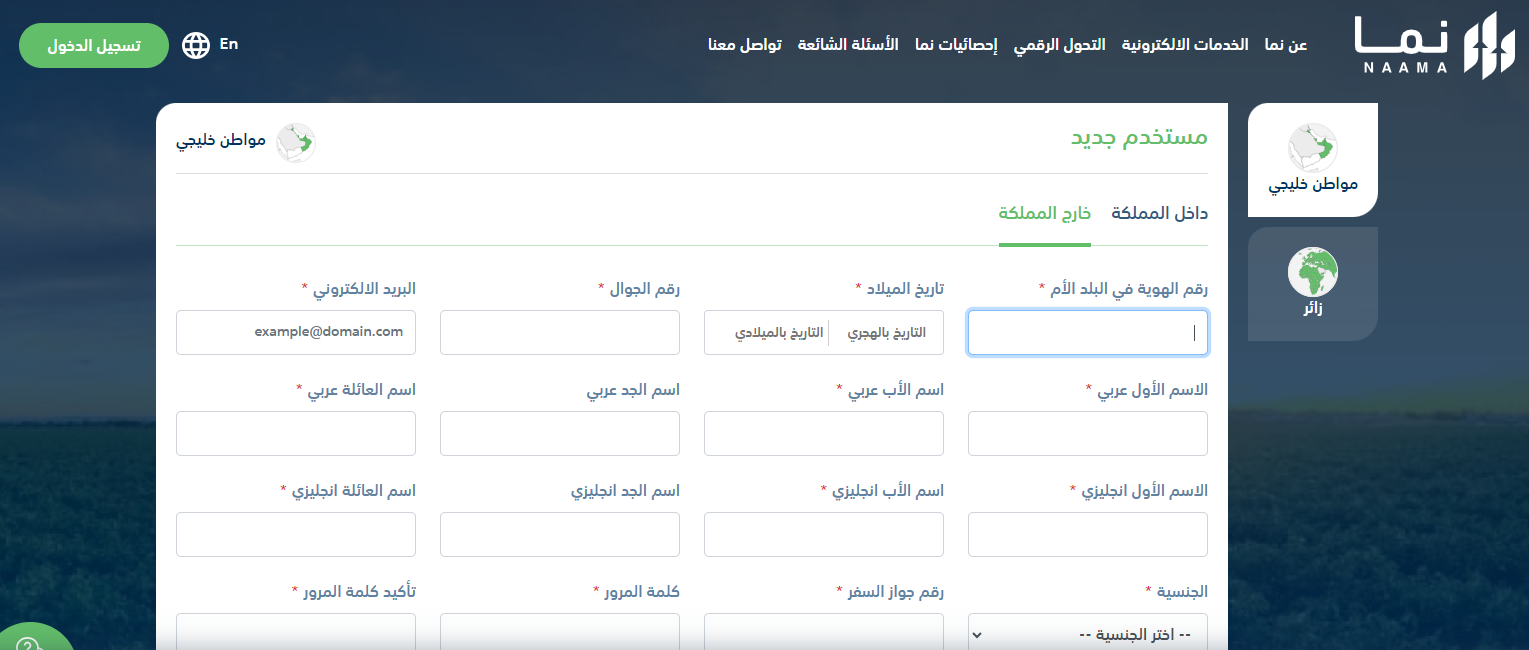 - سيطلب منك إدخال مجموعة من البيانات، ومن هذه البيانات ( تاريخ الميلاد – كلمة المرور ثم تأكيدها- رقم الجوال وتأكيده).