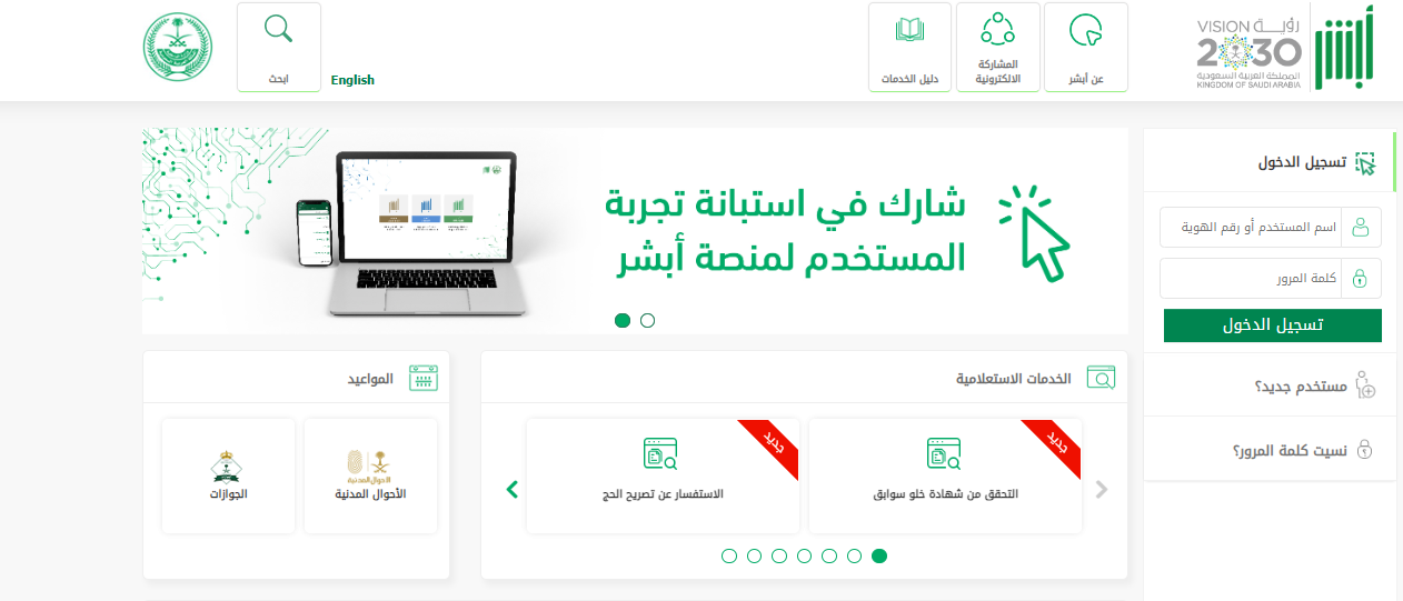 - التوجه إلى منصة أبشر الإلكترونية.