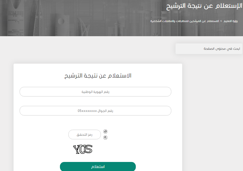 بعد التقديم على طلب المهن الشاغرة في التعليم السعودي يمكن الاطلاع على النتيجة إلكترونيًا فقط عن طريق تتبع طريقة الاستعلام عن النتائج للمرشحين للوظائف التعليمية: