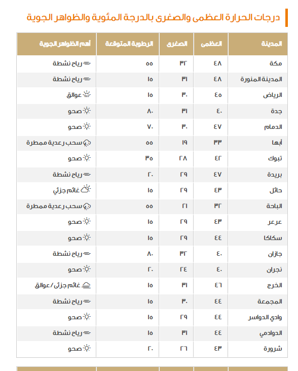 درجات حرارة ورياح أربعينية!! بيان عاجل من الأرصاد السعودية عن طقس الخميس