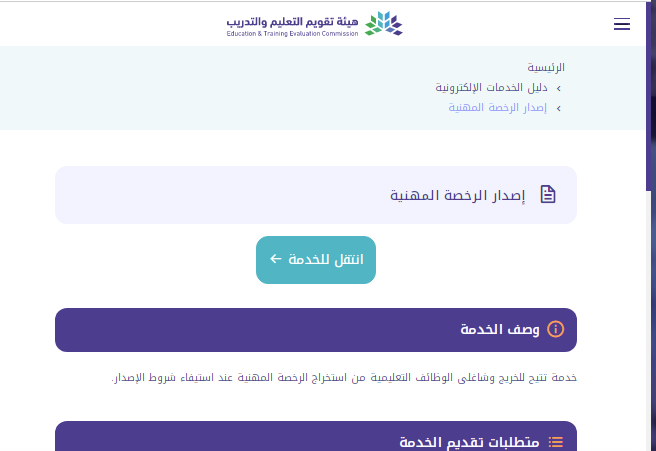 - ادخل إلى الخدمة مباشرةً من منصة هيئة تقويم التعليم والتدريب.