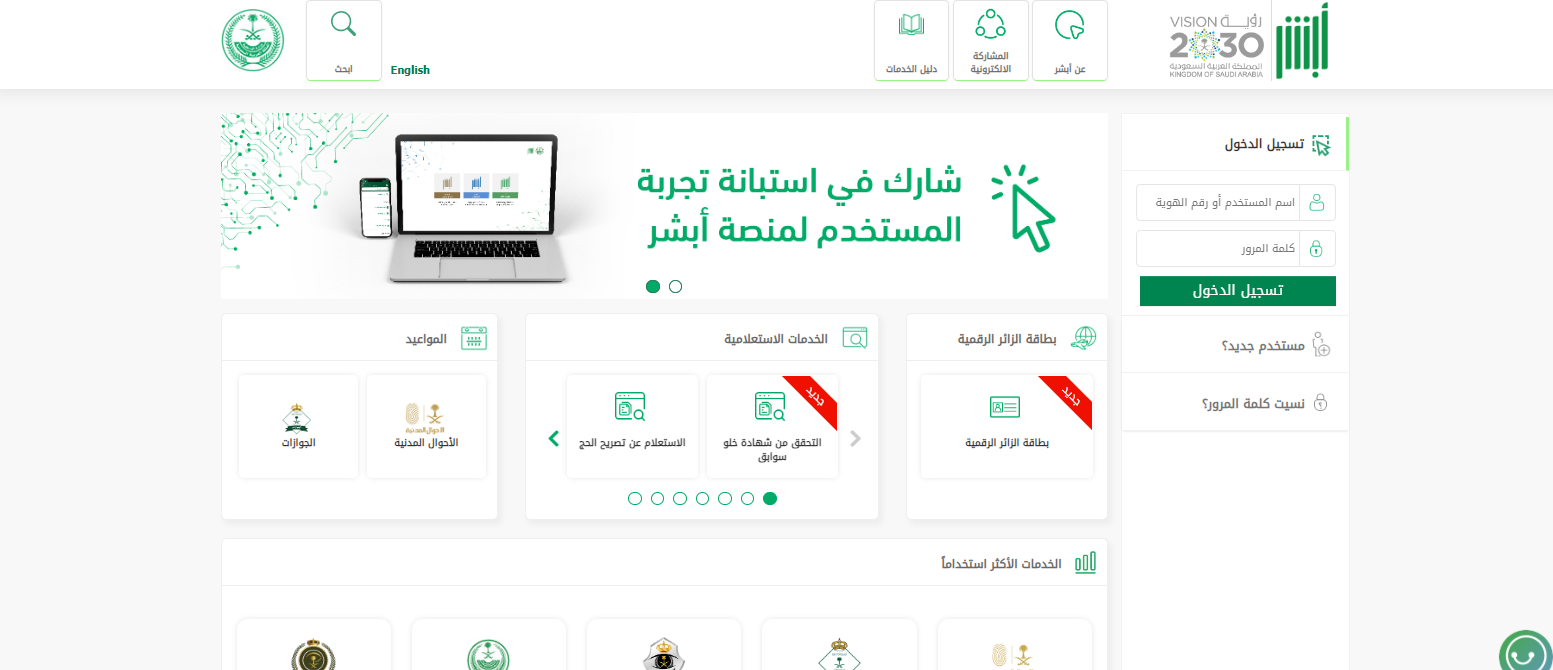 - الدخول إلى الموقع الرسمي الخاص بمنصة أبشر، من هنا.