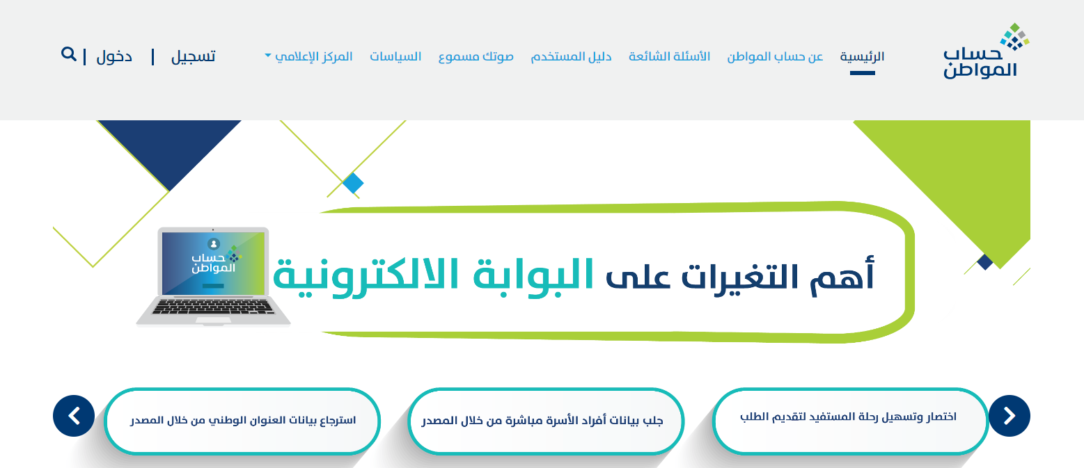 - الدخول إلى الموقع الرسمي لحساب المواطن، من هنا.
