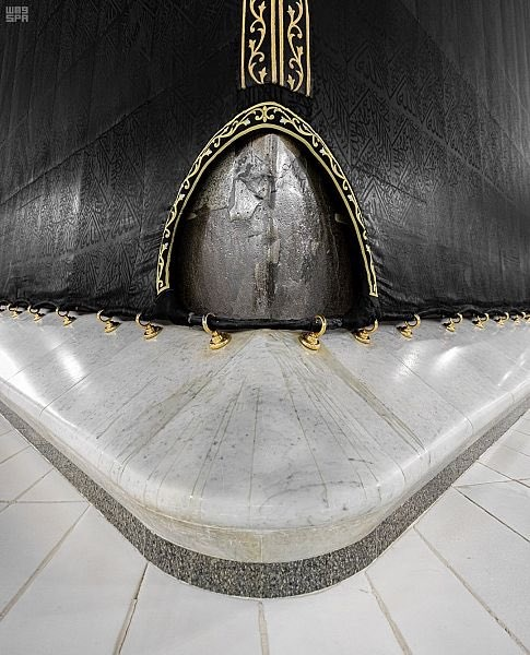 - يقع الحجر الأسود في الركن الجنوبي للكعبة الشريفة ويكون حجر أسود اللون بشكل بيضاوي محاط بالفضة.