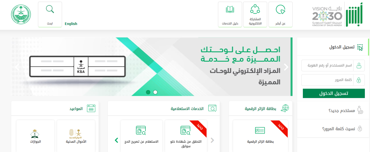 - التوجه إلى الرابط الإلكتروني منصة أبشر.