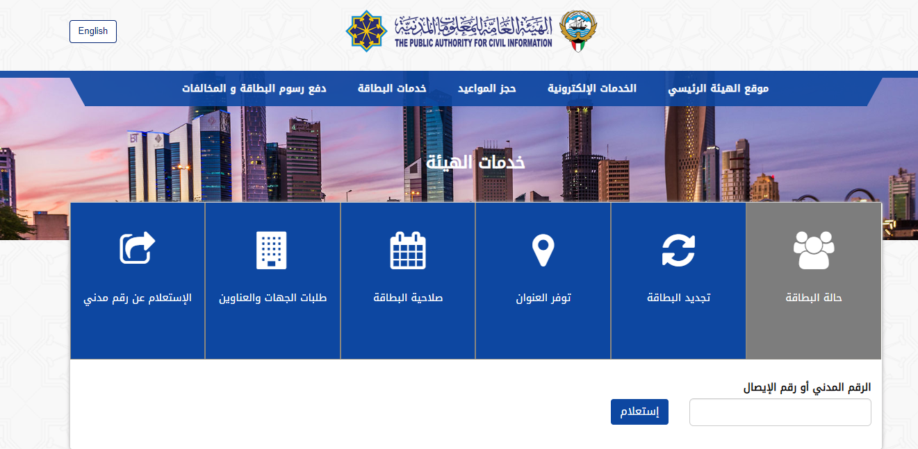 قامت الهيئة العامة للمعلومات المدنية في الكويت بطرح خدمة إلكترونية في غاية الأهمية تتعلق بالبطاقات المدنية وهي الاستعلام عن جاهزيتها؛ وهي ما تتمثل خطواتها فيما يلي: