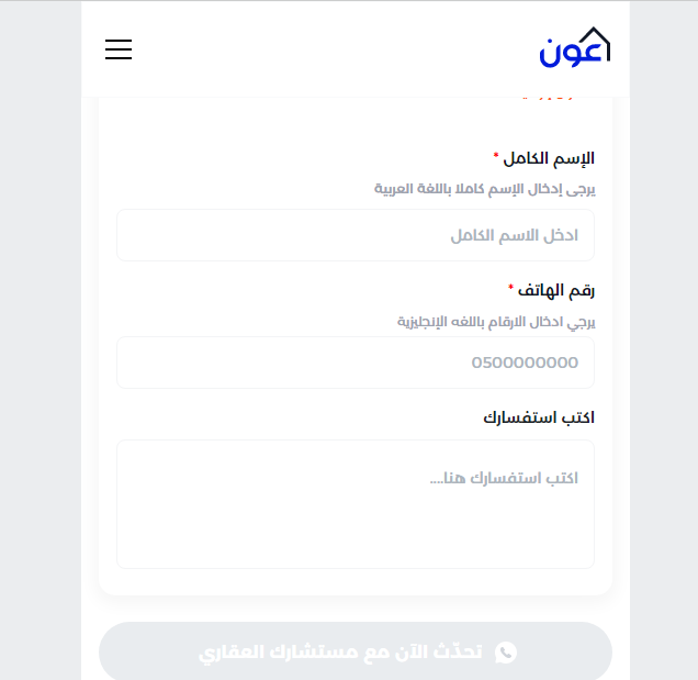 - انقر فوق تبويب تحدث الآن مع مستشارك العقاري لكي يتم التواصل مع المتقدم.