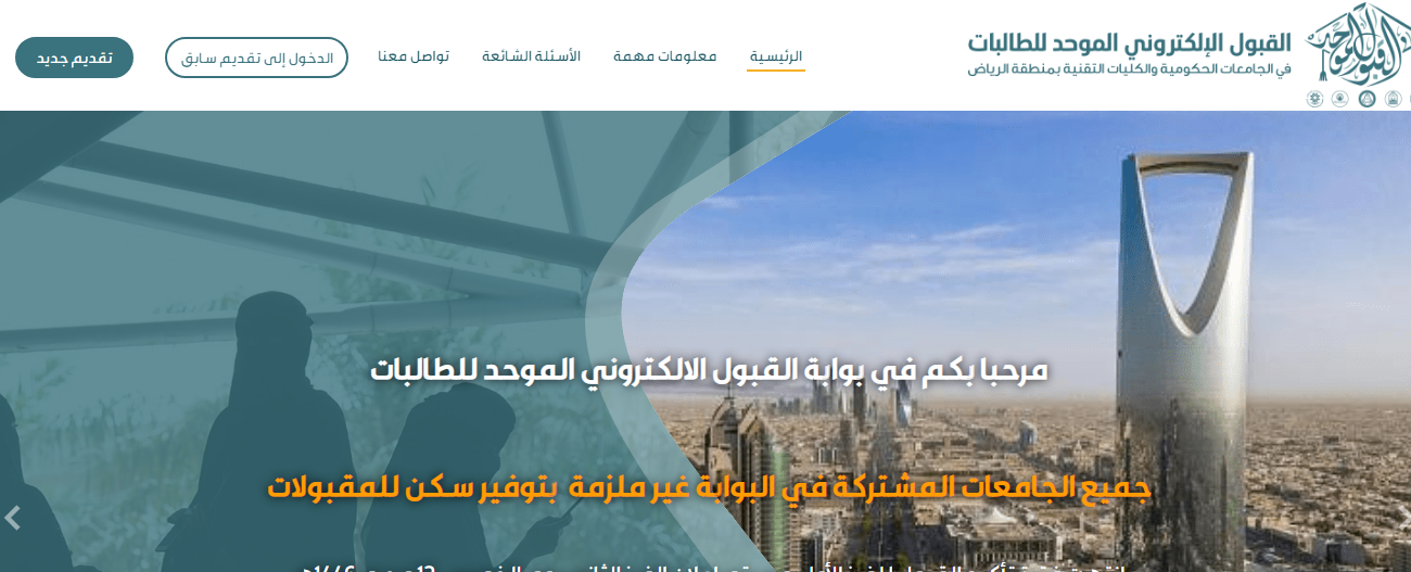 - أولًا الولوج إلى الموقع الرسمي القبول الإلكتروني الموحد للطالبات.