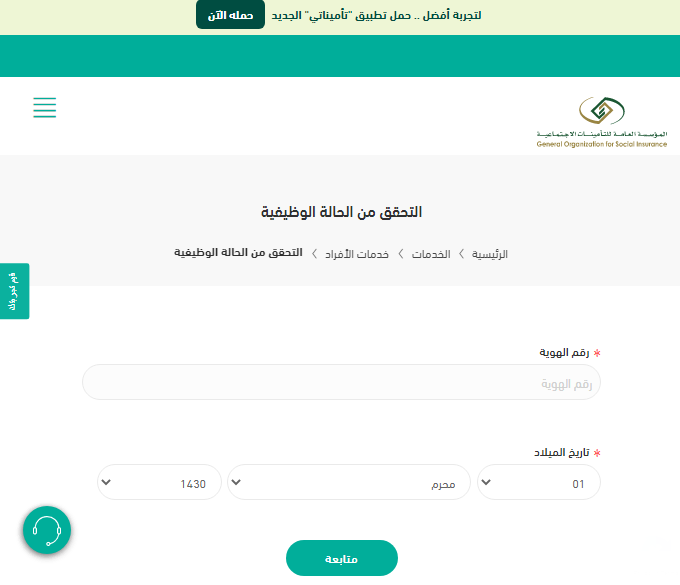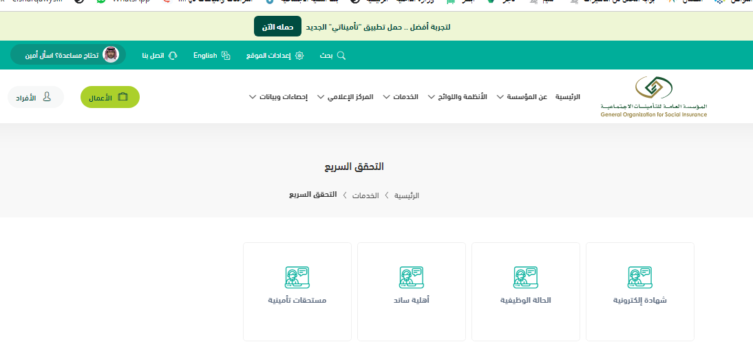 - اذهب إلى الموقع الإلكتروني المؤسسة العامة للتأمينات الاجتماعية.