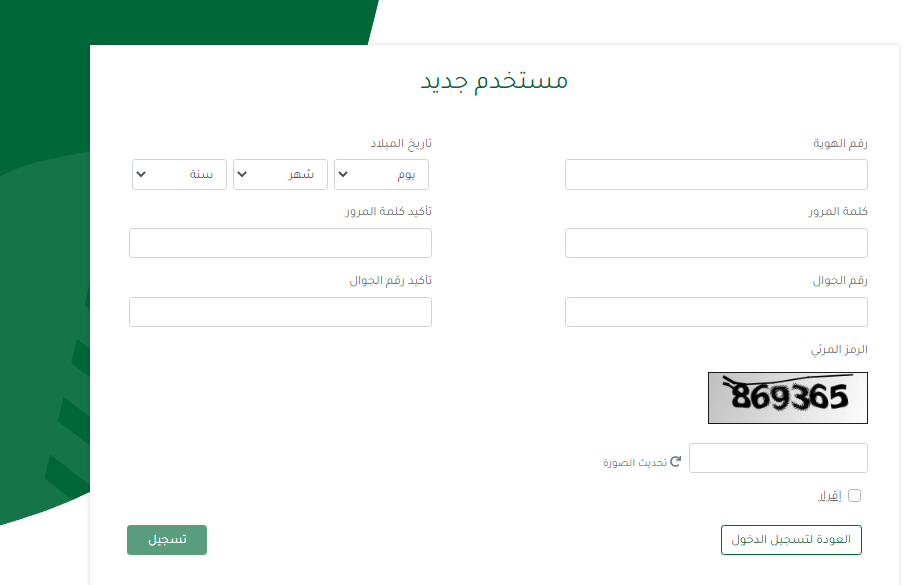 - قم بتعبئة جميع بيانات نموذج التسجيل الجديد.