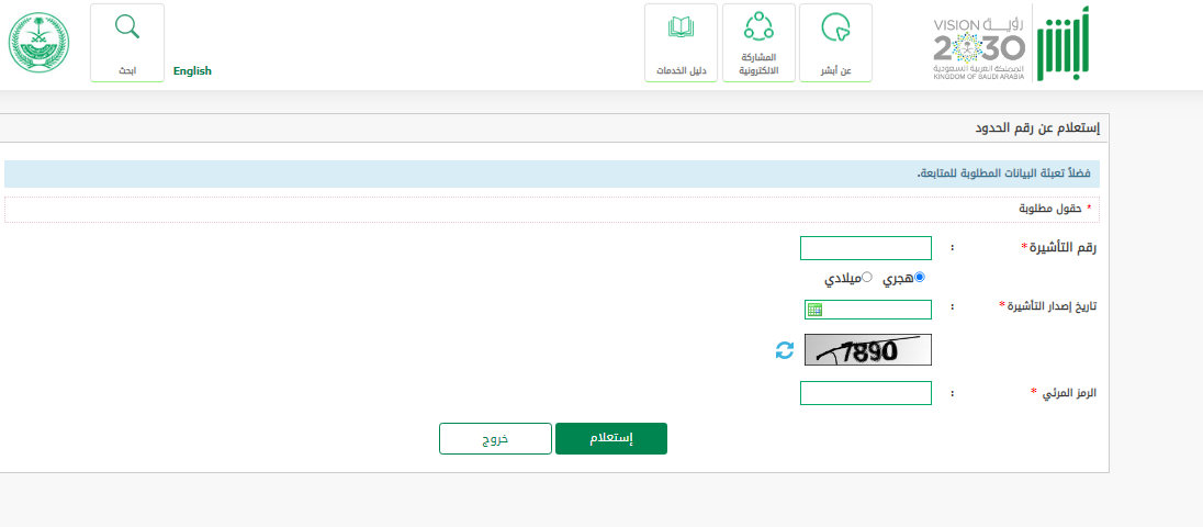 توفر أبشر خدمة التأكد من رقم الحدود بشكل إلكتروني سهل وبسيط حيث يتم استخدامها فقط عن طريق تتبع خطوات التحقق من بيانات رقم الحدود برقم التأشيرة: