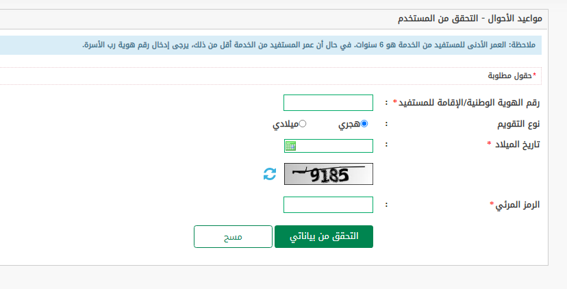 - اختيار الأحوال المدنية من المواعيد الموجودة بالصفحة.
