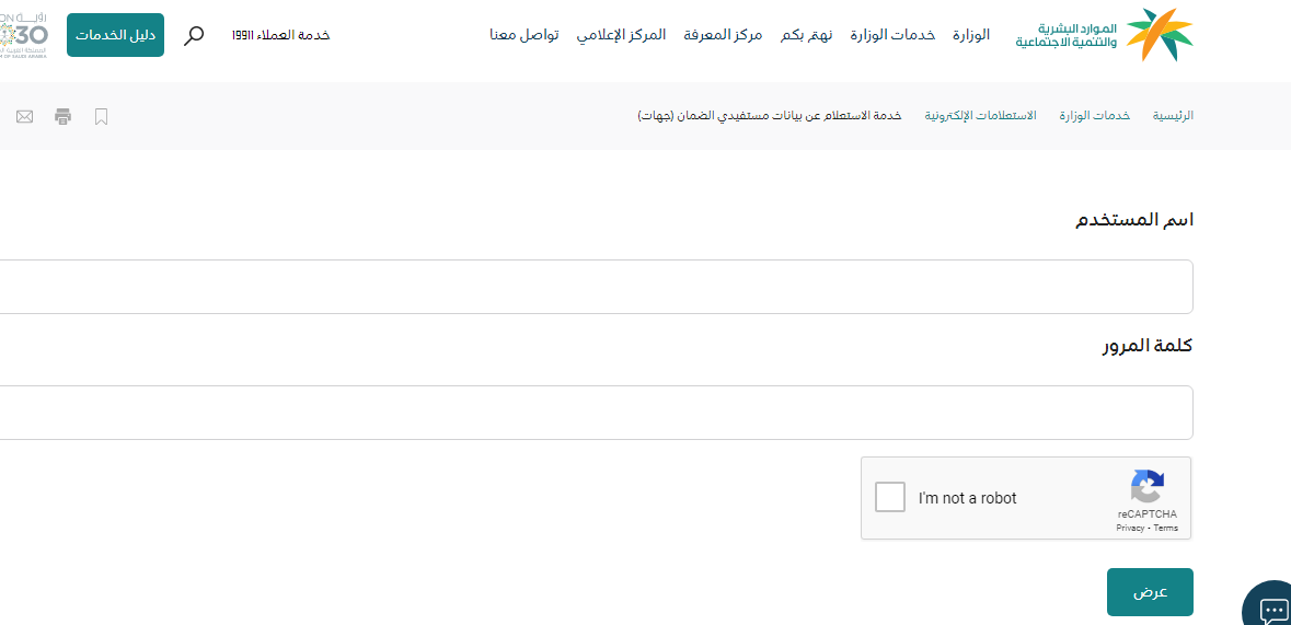 - ادخل إلى الصفحة الرسمية الإلكتروني خدمات الوزارة الموارد البشرية والتنمية الاجتماعية.