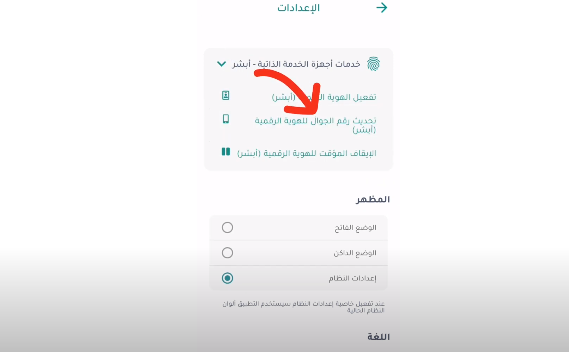 - اختر خدمة تحديث رقم الجوال للهوية الإلكترونية أبشر.