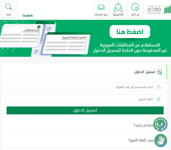 - الذهاب إلى الصفحة الرقمية الرسمية أبشر.