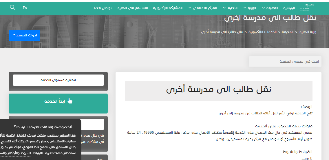 توفر وزارة التعليم السعودية خدمة تحويل الطالب من المدرسة، والتي يتم القيام بها بسهولة عن طريق تطبيق خطوات نقل الطالب من مدرسة إلى أخرى: