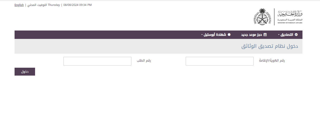 - قم بالدخول إلى نظام التصديق من الموقع الرسمي الإلكتروني وزارة الخارجية.